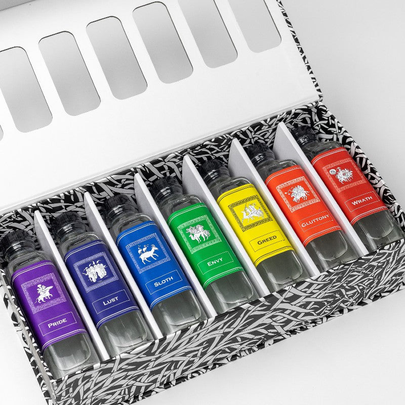 This gin tasting pack gives you everything you need to hold a tasting in the comfort of your own home or office with enough for tastings and to serve extra G&Ts. You get the full set of 7 Deadly Sin Gins 200ml bottles, plus a Hosting Pack, including tasting notes, ideas for how to run your tasting party…even recipe ideas for canapés to serve. The perfect ingredients to host a sinful gin party! See the online Shop for all details.